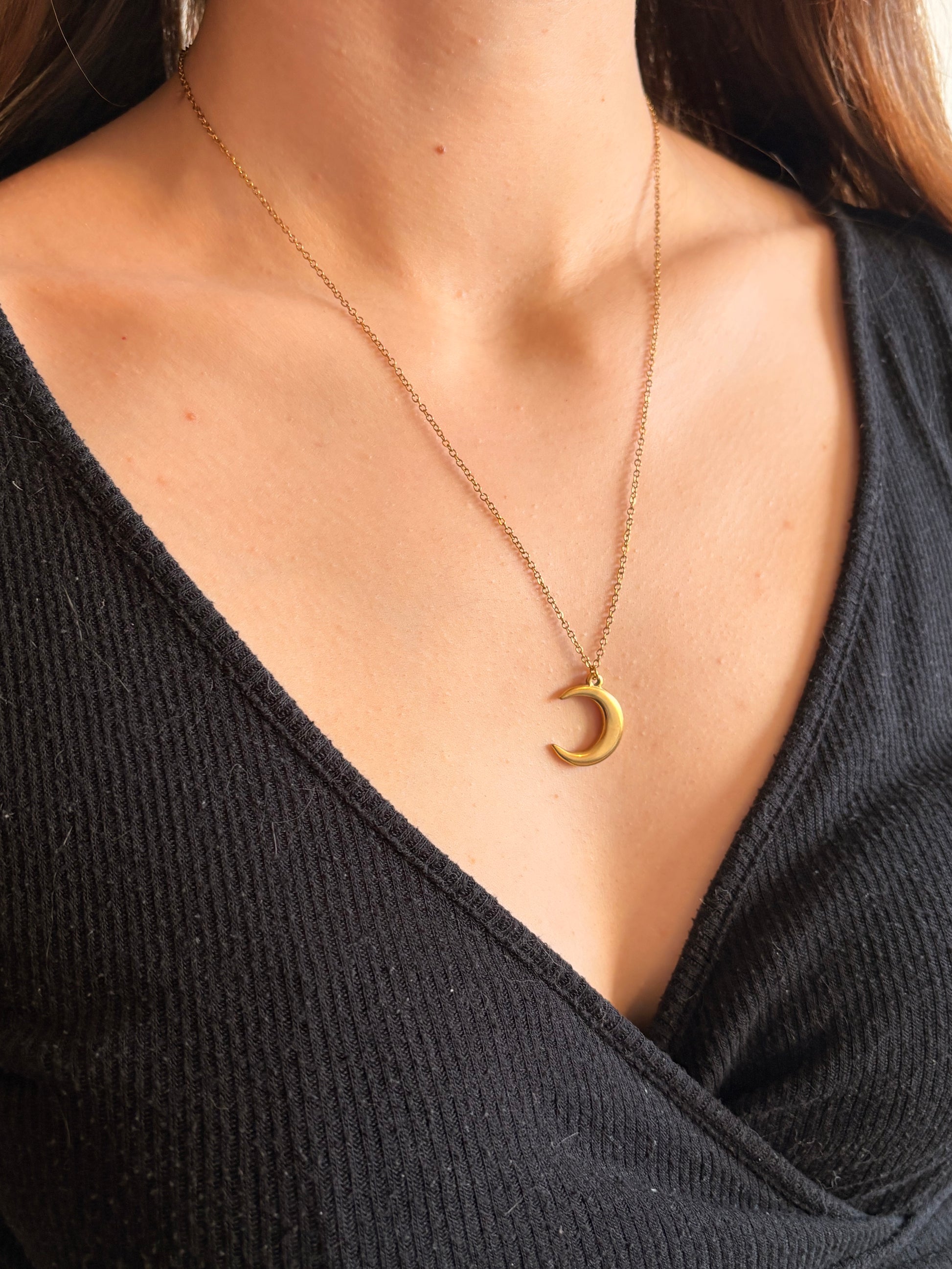 Ce collier se compose d’une chaîne fine et d’un pendentif lune.